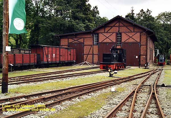 schmalspurigem Gleis steht 99 606, eine vom Verein zur Förderung
